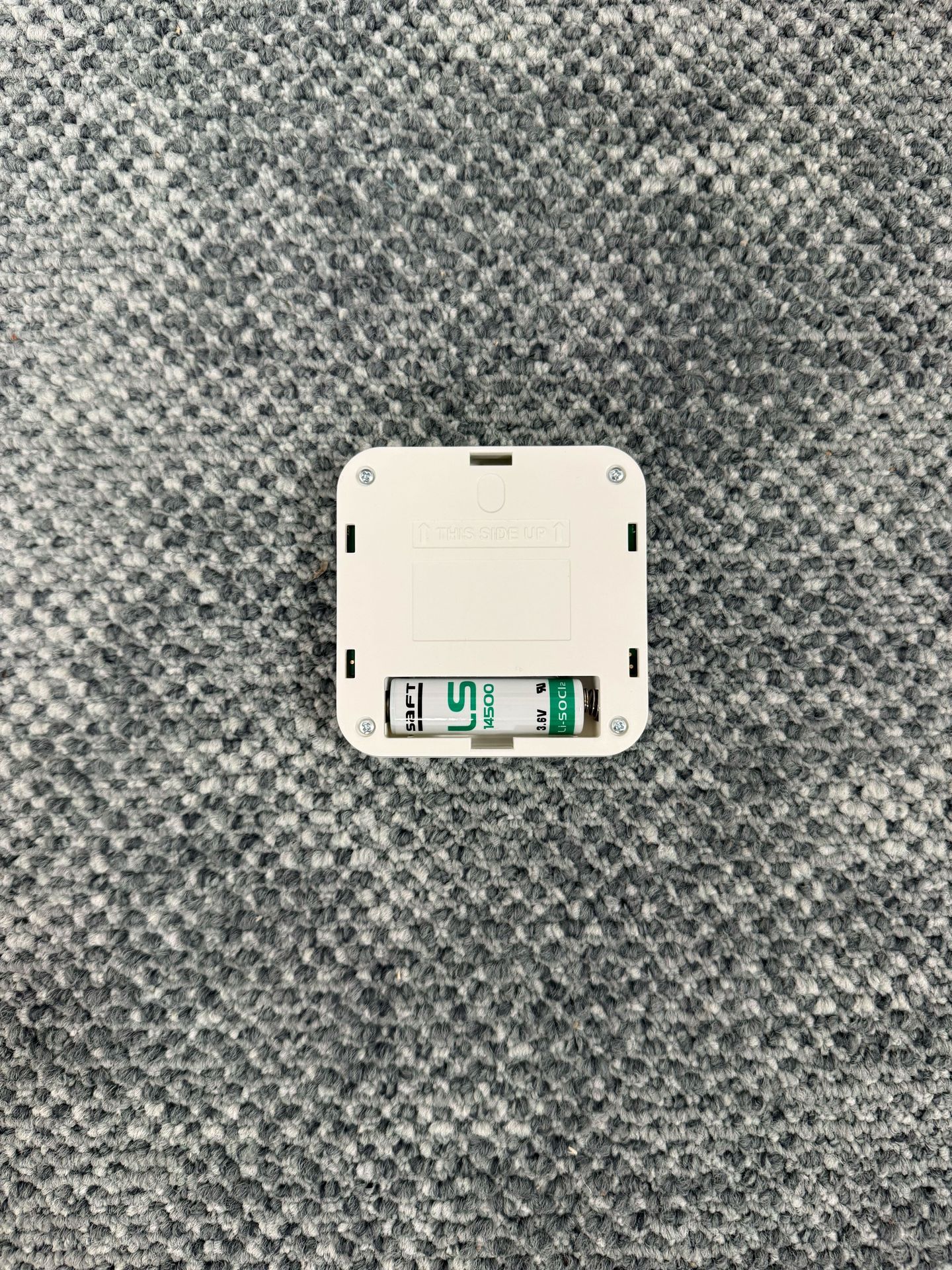 The ioButton is equipped with a replaceable battery. Both versions use a SAFT LR14500 3.6 V lithium battery, or equivalent.